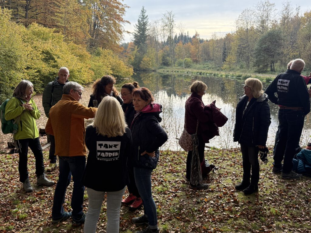 Nach einer kleinen Stärkung am Marktplatz in Biberach hatten wir eine kurze Fahrt zum Startpunkt der 7 km langen Wanderung rund um den Hermannsteich – über die Schutzhütte und vorbei am Schnakenweiher führte uns die Route durch herbstlich gefärbte Wälder bei Birkenhard.
